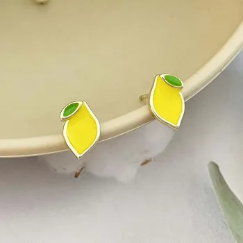 Thailand Malaysia Cute Earrings 925 Sterling Silver Fine Jewelry Enamel Yellow Lemon Lovely Fruit Gold Plated Girl Stud Earrings