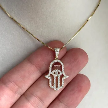 Religious Stacking Jewelry Dainty Moissanite Hamsa Hand Necklace 925 Silver Genuine Moissanite Hand of Fatima Pendant Charm