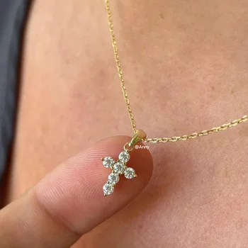 Women Girls Dainty Moissanite Cross Necklace 925 Silver 2.0MM Diamond Gold Plated Religious Pendant VVS Moissanite Cross Charms