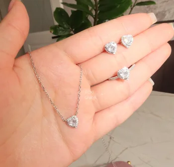 FOXI Jewelry Local Stock in US Sterling Silver 925 Jewellery Heart Shape 5A Cubic Zirconia Fine Jewelry Necklace for Women
