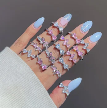 Wholesale S925 Sterling Silver Butterfly Ring Multi Row Luxury Statement Cocktail Ring