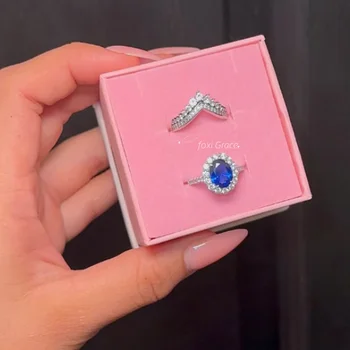SilverJewelry Rings Luxury Various Hot Sales Cubic Zirconia White Gold Plated 925 Sterling Silver Royal Blue Ring for Women