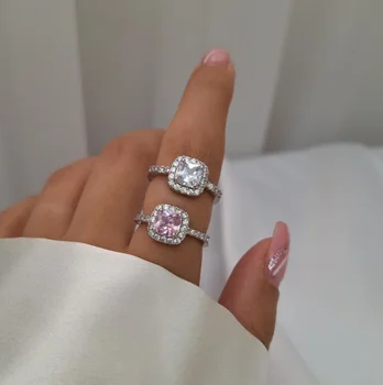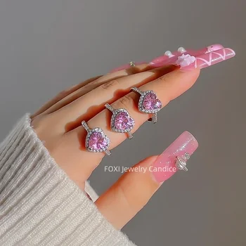 FOXI 925 Sterling Silver Ring Zircon Waterproof Wedding Pink Heart Cubic Zirconia Silver Engagement Ring for Women