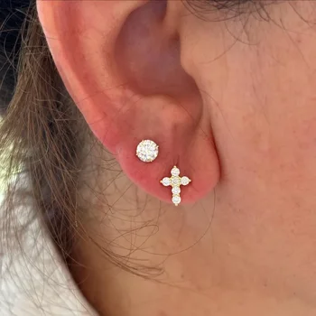Unisex Moissanite Screw-Back Cross Studs Sterling Silver 925 VVS Moissanite Mini Cross Stud Earrings Pass Diamond Tester
