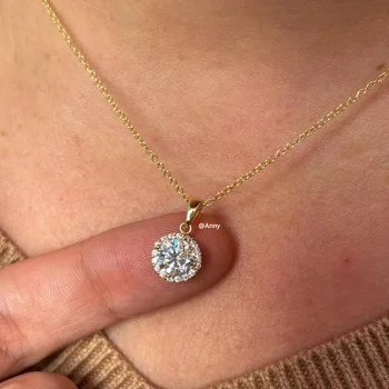 Luxury 9MM Halo Diamond Necklace S925 Sterling Silver Round Solitaire D Color Moissanite Wedding Necklace Halo Necklace Gra