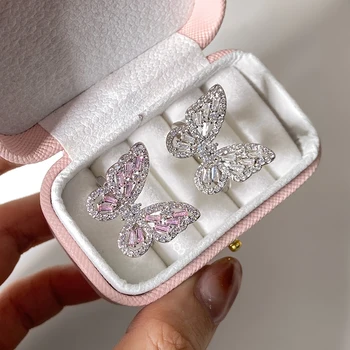 Hot Sell Silver Ring Jewellery Stacking Silver Rings Heart Butterfly Shape pink Zirconia 925 Sterling Silver Rings Jewelry Women