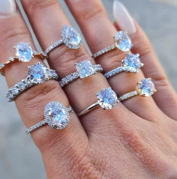 Classic Wedding Ring Silver Jewelry High Quality Stone Shaped Crushed Ice Zircon 925 Silver Engagement Wedding Rings