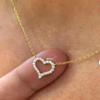 Pass Diamond Tester Dainty Moissanite Heart Necklace 925 Sterling Silver Minimalist Diamond Moissanite Heart Pendant Necklace