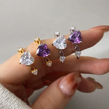 SilverJewelry Rings Heart Luxury Cubic Zirconia White Gold Plated 925 Sterling Silver Purple Ring for Women