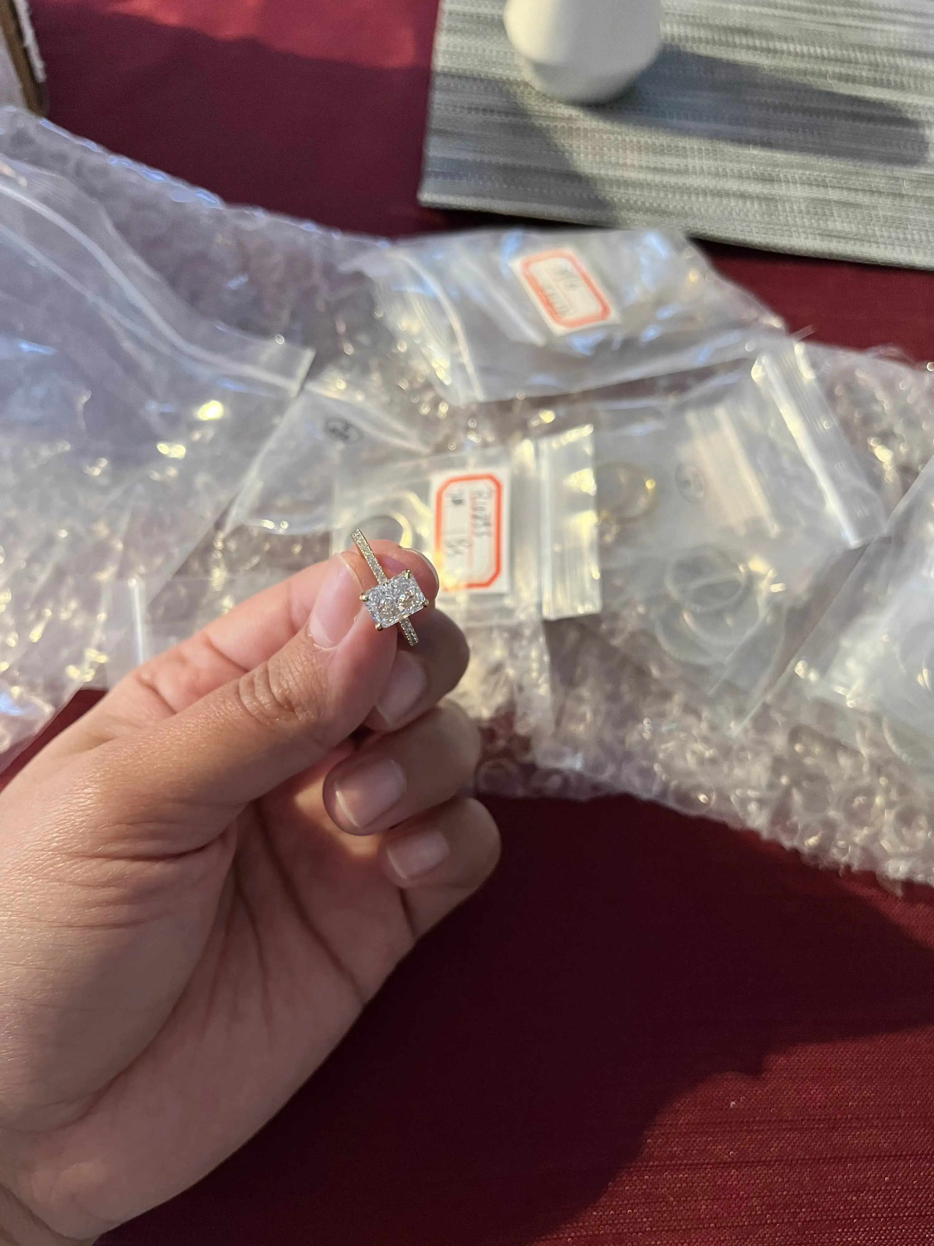 Classico quadrato radiante taglio Dainty CZ diamante gemma eternità fedi nuziali 925 argento Sterling Mini anello di gelsomino