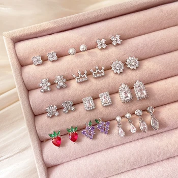Personalized Design Perfect Gift Hot Style Small and Light Zircon CZ Earrings 925 Sterling Silver Stud Earrings Sets Bulk Buy